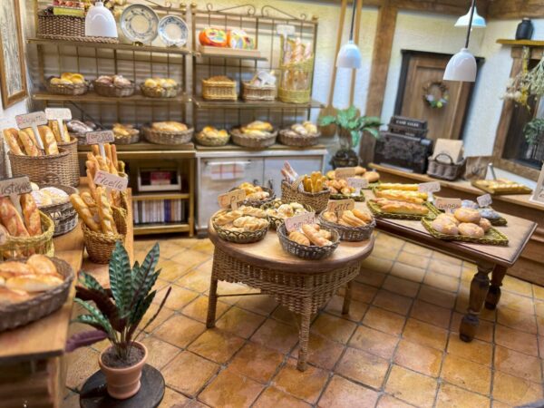 小さなパン屋さんの模型もありました。中を覗くと、おいしそうなパンがずらり。見ているだけで、甘く香ばしい匂いが漂ってくるようなリアリティにワクワクしました。