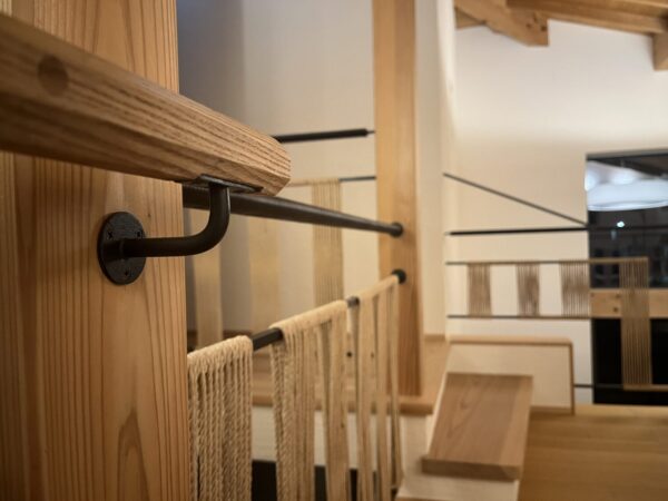 もちろん手摺も既製品ではなく、無垢の木を加工しております。