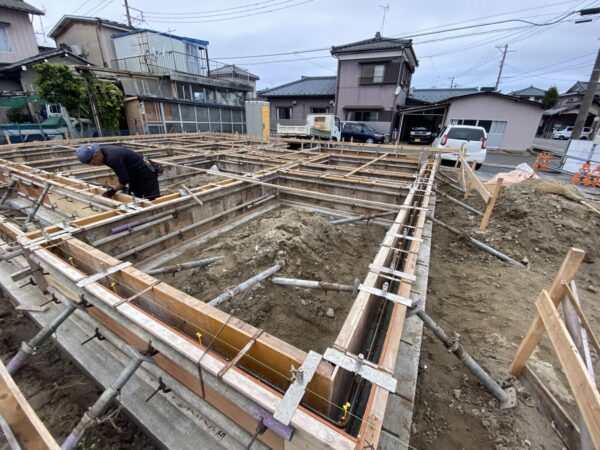 アンカーチェックが完了すると、立上り部分のコンクリート打設に進めます。