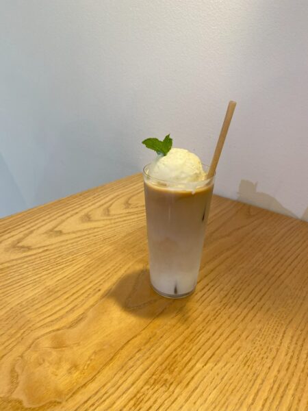 コーヒーのしっかりとした苦味とアイスクリームの甘さが絶妙なバランスを生み出し、爽やかな味わいが特徴です。コーヒー好きの方には特におすすめで、軽食とも相性抜群です。