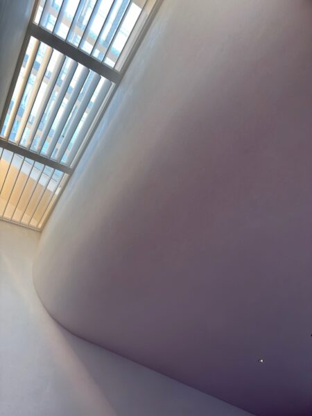 天井のRと天窓から入る自然がとても美しかったです。納まりもとても繊細なデティールです。