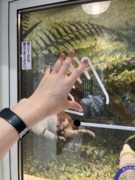 写真のようにガラスとフレームごとの熱の伝わり方を実際に触って確認できます。