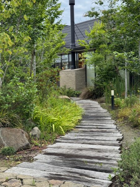 アプローチは、単なる通路としての役割にとどまらず、建物と周辺環境との調和を図るうえで重要な空間です。周囲の自然や街並みと一体感を持たせることで、建物そのものの印象をより豊かに、魅力的に演出することができます。