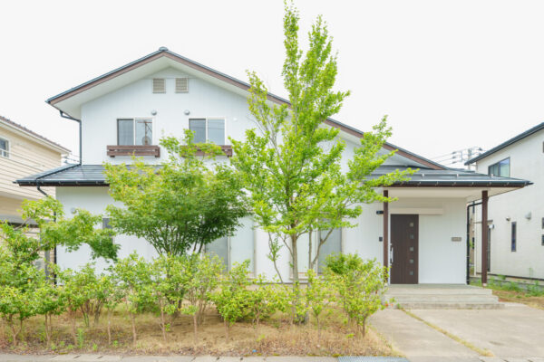 外装工事は屋根、外壁、軒裏、木部を塗装を行い、玄関ドアも調子が悪かったので、新たに新調しました。外壁はホワイト色に少しグレーの入った塗装に仕上げ、木部は玄関ドアと合わせて再塗装をしております。
