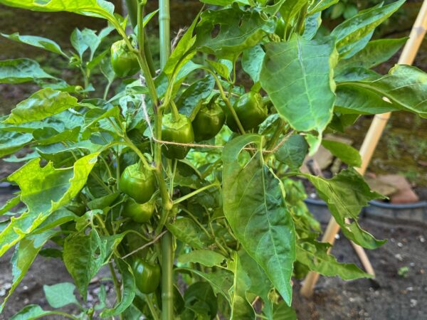 畑は庭の中央に瓦を立てて囲ってつくりました。周りの木々がそこそこ育ったので日陰になることがおおくなっています。日照や土壌の条件で風味が控えめになったかもしれません。調べると、日照時間が長いほど甘味・風味が濃くなる、実の充実には直射日光と高温が必要。日陰の影響で土の乾きも遅くなりがちで、根が過湿気味になると風味にも差が出ると。今後の工夫としては木々の枝を軽く剪定して光を通す。反射資材(白マルチなど)を活用して光を補うなどが考えられます。