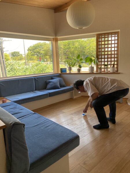 先日、近畿大学医学部で生活環境中の化学物質や微生物による健康影響の研究をされている東教授の研究チームが我が家にお越しくださり、調査を行なってくださいました。