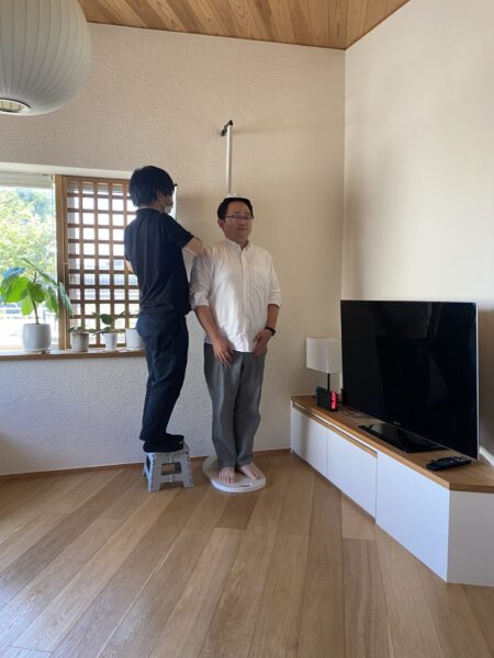 今回の調査は木の家に入居してから5年後の夏の環境測定。木質住環境の室内環境(温度、湿度、二酸化炭素、化学物質濃度、微生物濃度)および、居住者の健康状態に関する調査を行い、木質住環境を有する住宅の居住性を明らかにするためのものになります。