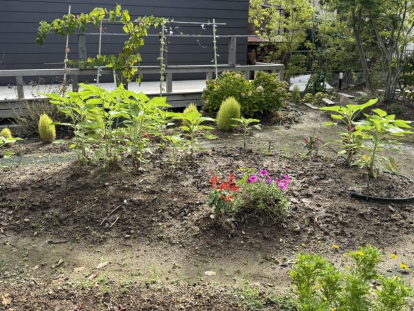 思うように育たない苗もありますが、残ったひまわりがぐんと大きくなって、