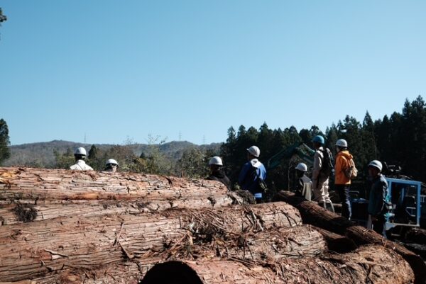 お話をうかがう中で、世代を超えて、先人たちが植えて代々大切に管理されてきた杉の木を、今の私たちが使う事にロマンを感じました(※今回伐採された木は全て中国に輸出するそうです)。