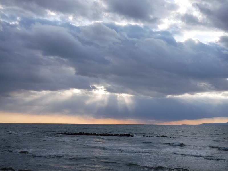 この時期にサーフィン 佐渡ヶ島が少し見えます