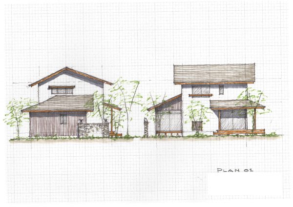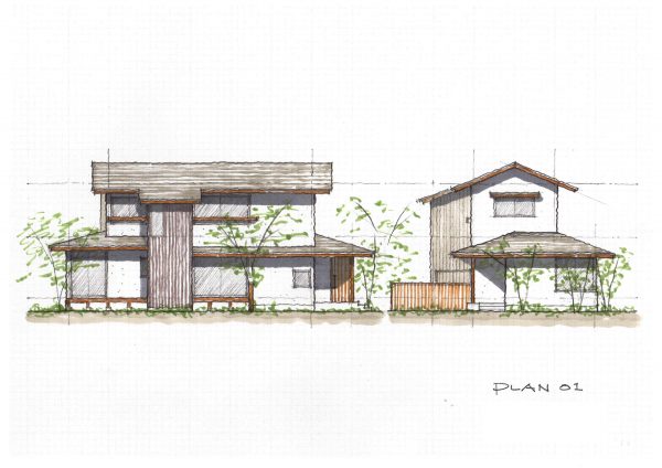この他、私が担当させていただいております「コの字型間取りの家」と、