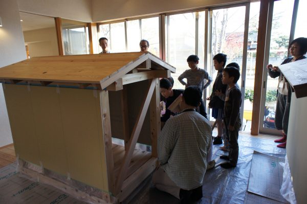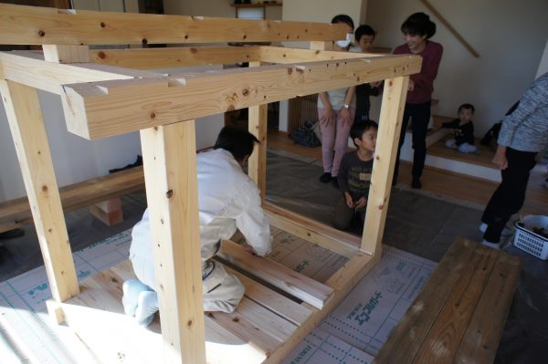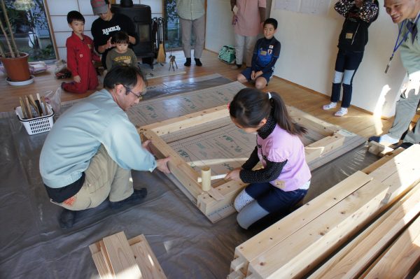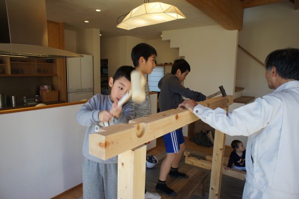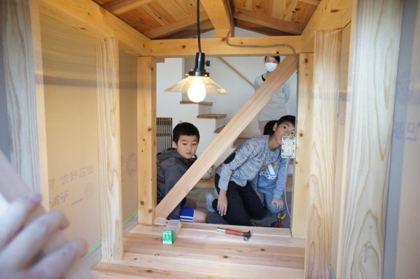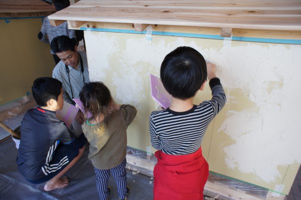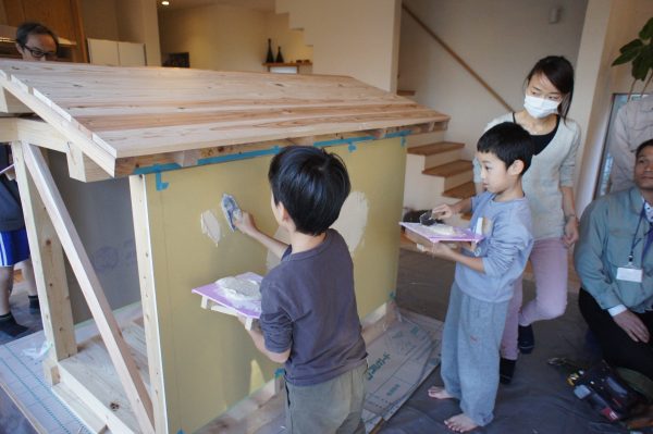 名前の通り、子どもさんを対象に大工工事、電気工事、左官工事を