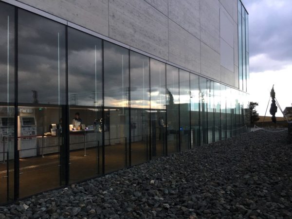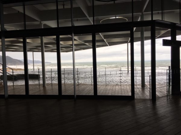 ホールの右手には、ガラス越しに上越の荒波を見ることができます。