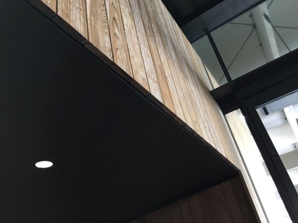 天井を目透かしにして、板の小口を見せている納まりでした。