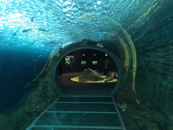 館内は、まるで海底洞窟を探索しているかのようです。