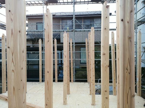 土台敷きから始まり、大引を掛けて1階床組を構成していきます。