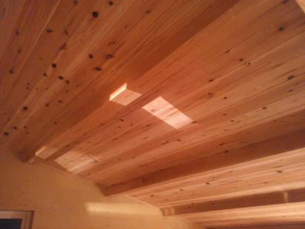 先程とは逆に板と同じ方向に梁(母屋)です。