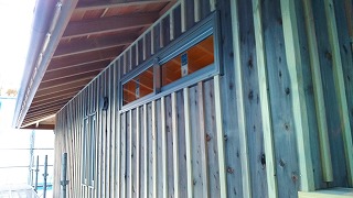 北側外壁の杉板張りの方も押縁や出隅材