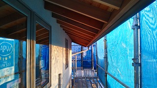 体に向けて、雨樋の取付けなど足場絡み