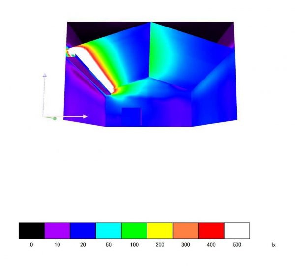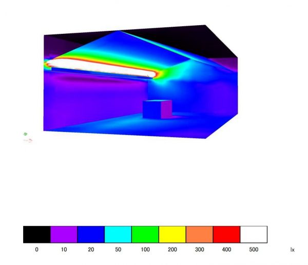 壁の反射を考慮するともう少し明るくなると思いますが、床面で20lx(ルクス)程度。