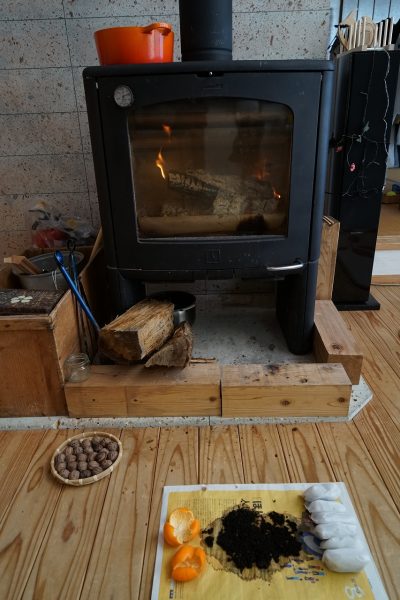 朝晩は、ストーブのそばに置いておくと乾燥が早いので、