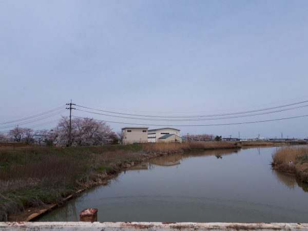 緩やかな流れの農業用河川が傍らに横たわる