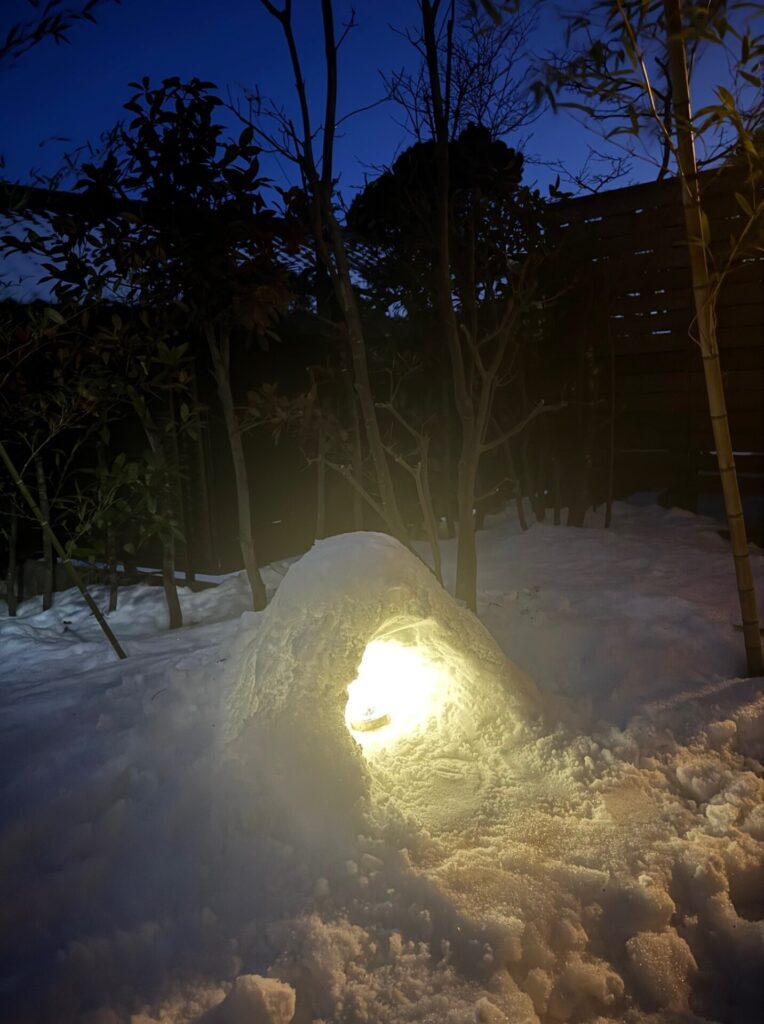 この度の寒波で雪がなかなか溶けないので家の玄関先にかまくらを作り明かりをつけて灯籠にしてみました。ぽつんとかまくらの灯り。雪が降ると音が吸収されて世界が静かになりいつもと違う別世界です。