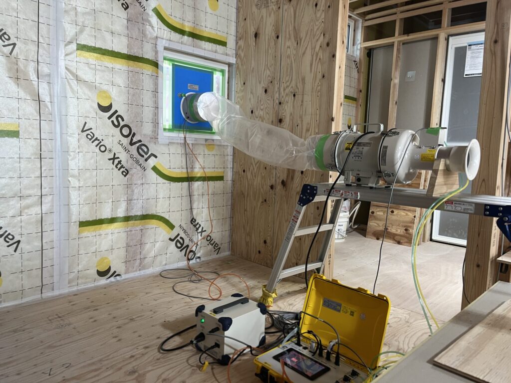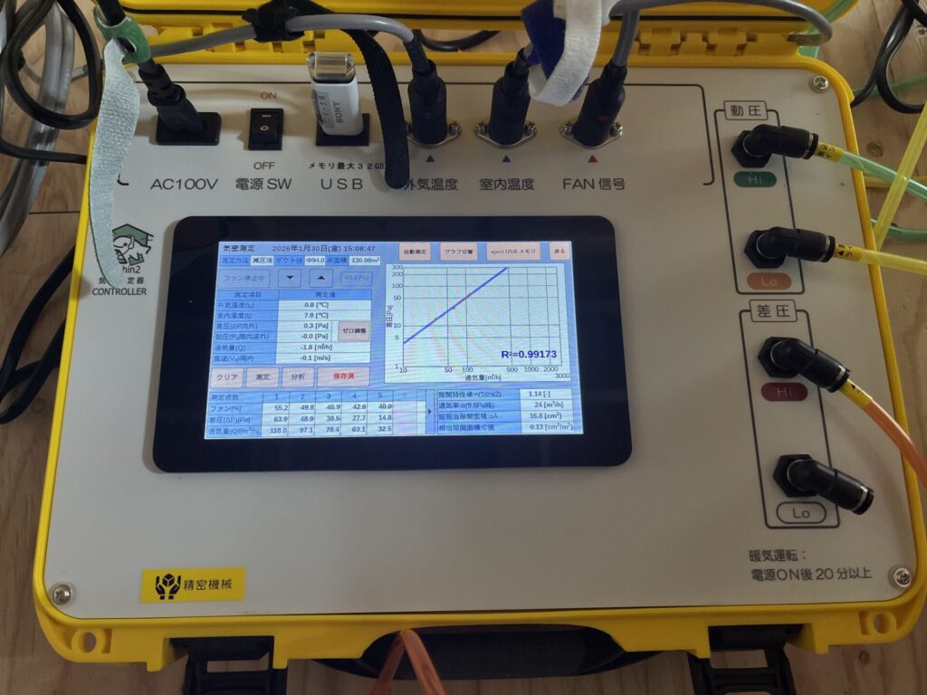 断熱・気密工事まで工程は順調に進み、先日、気密測定を実施いたしました。