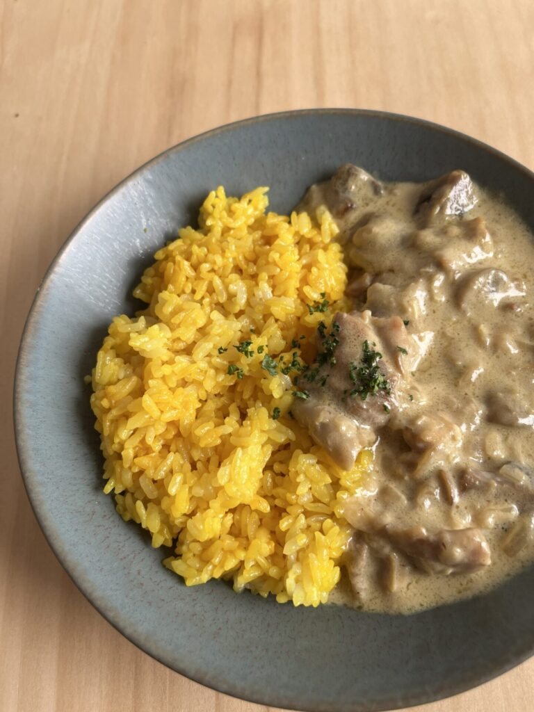 そして今年も、昨年と同じくサフランライスと一緒にご提供します。 ふわりと広がるサフランの香りと、クリーミーなフリカッセソースが絶妙に寄り添い、ひと口ごとに満足感が広がります。 変わりやすい冬の空気の中でも、心まであたたかくなるようなランチプレートです。