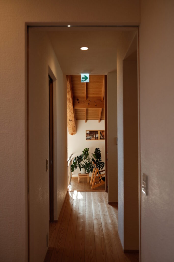 こちらは鳥屋野南モデルハウスの寝室から見た廊下の様子。