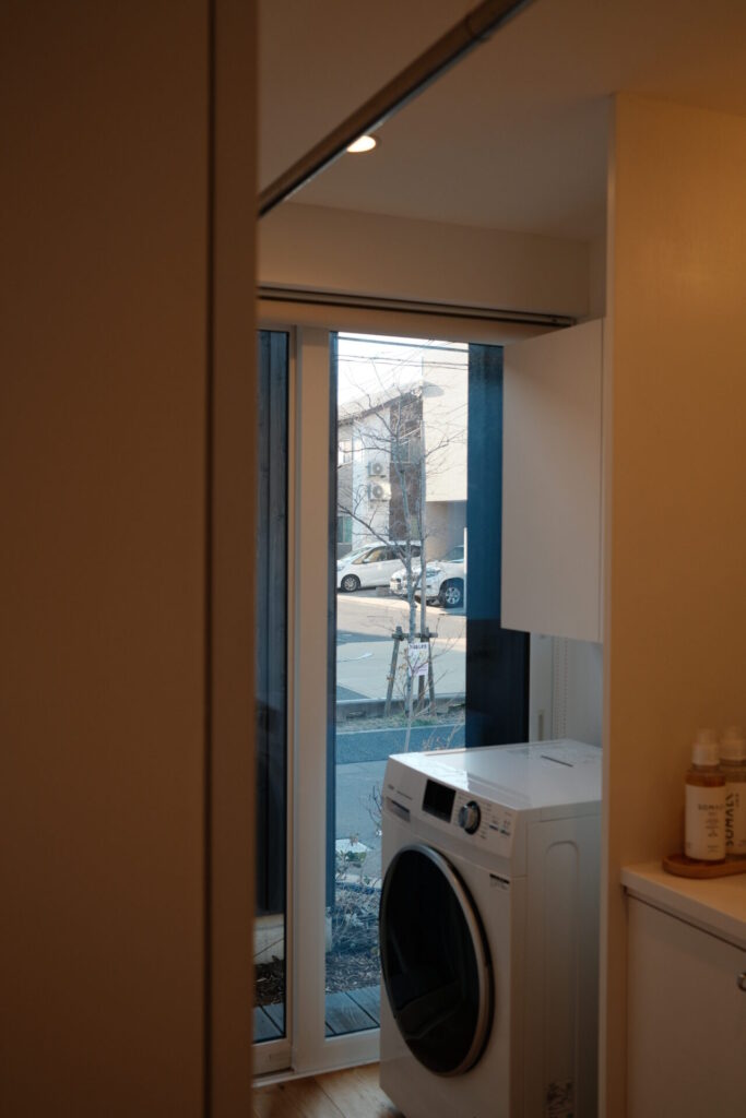 こちらはモデルハウスのランドリー。部屋の隅を開口部にして「抜け」をつくっています。